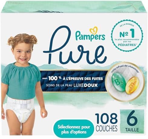 Pampers Pure Protection Baby Diapers, Size 4 (22-37 lbs), 108 Count, Up to 100% Leakproof, Premium Plant-Based Skin Protection, Hypoallergenic Soft Diapers
