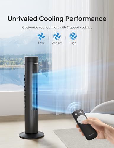 Powerful Cooling Performance: This high-performance Pelonis tower fan for living room features CycleBoost technology, 90° oscillation and 3 fan speeds (low, medium, high) This standing tower fan circulates the air up to up to 11 Ft. away; providing optimal cooling coverage for your home or apartment
