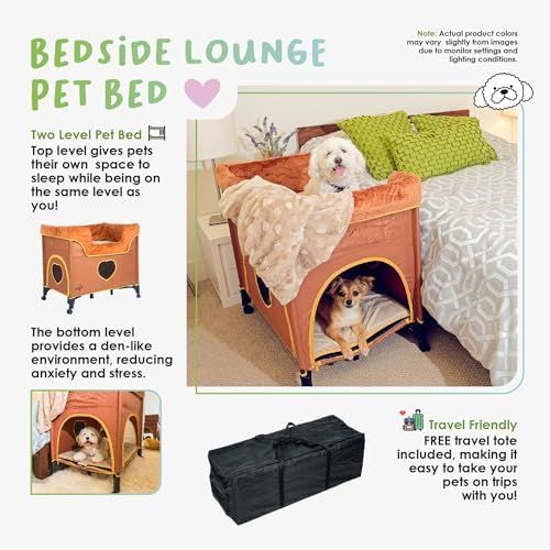 ๐ TWO-LEVEL DESIGN: Petique Bedside Lounge Pet Bed offers a unique two-level design. The bottom level provides a den-like environment, reducing anxiety and stress, while the top level allows pets to be right next to you or on the same level
