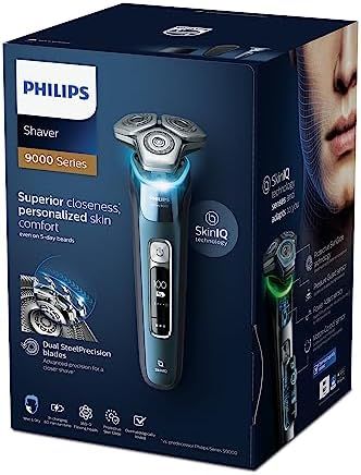 Philips Electric Shaver Series 9000, Wet & Dry Electric with Dual SteelPrecision Blades, Ice Blue, S9982/50