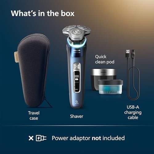 \\\"\\nOur patented Triple Action Lift & Cut shaving system lifts the hair gently from its root to cut it precisely up to 0.00mm skin-level, without cutting skin for long-lasting closeness.\\nPowered by AI, our Pressure Guard system reads the pressure you apply and provides real-time feedback through lights, aiding you in adjusting the right pressure for optimal skin comfort. For a personalized shave that is just right for you.\\nPair your shaver with our app for an ever-better routine and technique. Experience real-time guidance and personalized shaving insights to help you look and feel your best every day.\\nFully flexible and smaller, compact heads with skin stretching patterns dynamically adapt to every curve of your face. For constant skin contact with 20% more precision* to catch difficult hairs on the neck and under the nose. Precision everywhere\\nOur most advanced skin protection delivers 50% smoother gliding on the skin** with the hydrophilic coating holding up to 500,000 microtech beads per square centimeter. For less friction and maximum comfort.\\nIncludes 1 Shaver i9000 Prestige Handle, 1 quick clean pod, 1 cleaning cartridge, 1 trave pouch\\\"