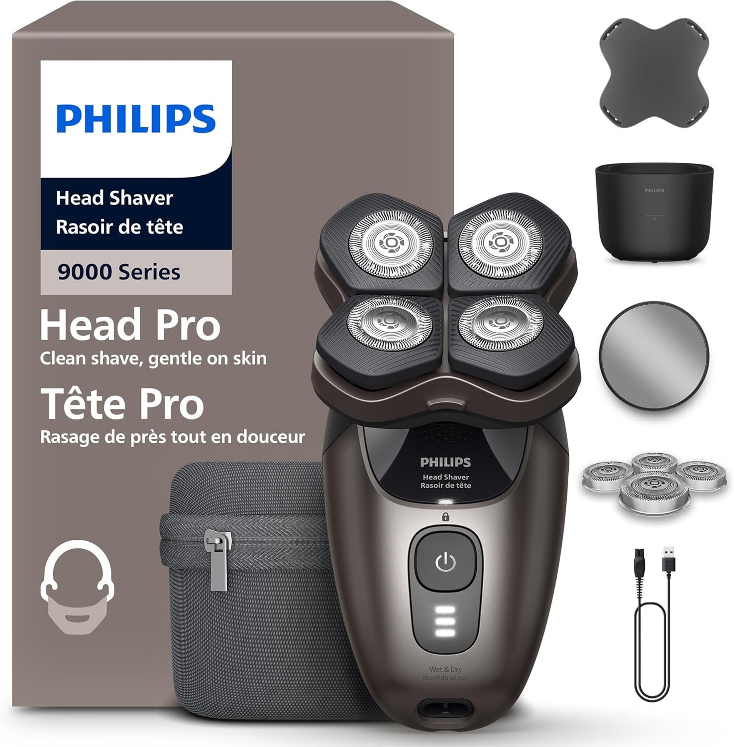 Electric head shaver for men and women from the world’s No. 1 electric shaving brand¹: the Philips Head Shaver Pro 9000 Series is designed for a close shave that’s also comfortable on the skin