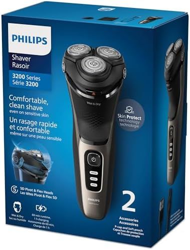 From the #1 electric shaver brand¹: Shaver 3000 Series with SkinProtect Technology gives you a comfortable, clean shave with 27 self-sharpening PowerCut Blades and 5D Pivot & Flex Heads