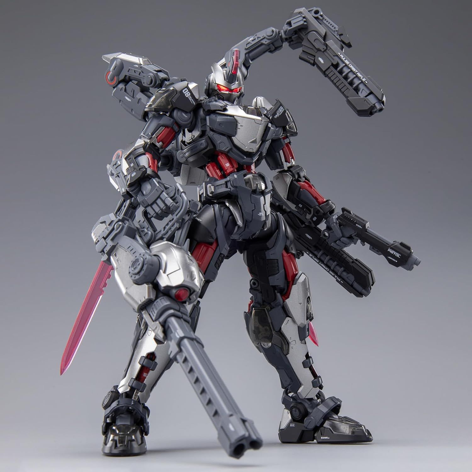 【Product Specs】Height - 8.85 IN , Crafted from durable ABS and PVC materials. Product Include: Tastyr main body*1 (partially painted), weapons*4, daggers*2, electric pulse knives*4, general-purpose mechanical dog (partially painted)*1, composite preparation table*1 (with metal snake tube), metal etching sheet*2, water stickers*3, (a total of 28 panels).