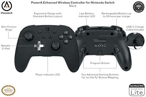 PowerA Enhanced Nintendo Switch Controller Wireless - Black, Rechargeable Pro Controller for Switch, Immersive Motion Control and Advanced Gaming Buttons