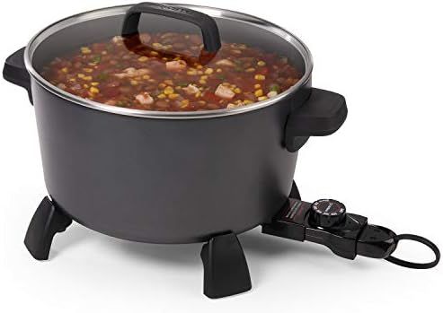 PFAS-free ceramic nonstick finish, inside and out Steams, stews, roasts, boils, and deep fries Cooks soup and stew, roasts, ham, rice, vegetables, pasta and more Deep fries up to ten cups for big batches of chicken, fish, fries, and donuts Large diameter nonstick cooking surface for easy browning Multi-use basket for deep frying, steaming, and blanching Basket hooks onto rim of multi-cooker for draining Show More