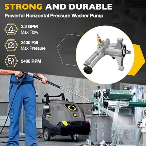 EFFICIENT CLEANING CAPACITY: Our pressure cleaning pumps offer superior cleaning capacity with a maximum pressure of 2400 PSI, maximum flow rate of 2.2 GPM, Maximum Pump Speed of 3400 RPM, Shaft Size: of 7/8\", Maximum Fluid Temperature: of 140° F, efficient operation capability can effectively clean dirt, grease, and contaminants, leaving any surface looking brand new.