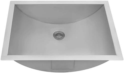 16 GAUGE STAINLESS STEEL BATHROOM SINK: Premium T-304 Grade (18/10 Chromium/Nickel) will never rust or stain | COMMERCIAL-GRADE BRUSHED FINISH: Easy to clean and long-lasting | SOUND-PROOF COATING: Heavy duty thick rubber padding minimizes noise and reduces condensation. ARC-SHAPE BOWL: For a modern bathroom sink look and exceptional drainage | BATHROOM SINK: Useful in residential or commercial use | INCLUDES MATCHING POP-UP DRAIN: Constructed of premium stainless steel. UNDERMOUNT SINK INSTALLATION: Cutout templates and mounting clips are provided | BOWL DEPTH: 5.5\" | EXTERIOR DIMENSIONS: 18\" (wide) x 13\" (front-to-back). INTERIOR BOWL DIMENSIONS: 16\" (wide) x 11\" (front-to-back) | 1.75\" DRAIN OPENING: Standard size — includes push popup drain assembly | INCLUDED IN BOX: Rectangular Bathroom Sink, popup drain, mounting clips. cUPC compliant and approved by IAPMO to meet all US and Canadian plumbing standards. › See more product details