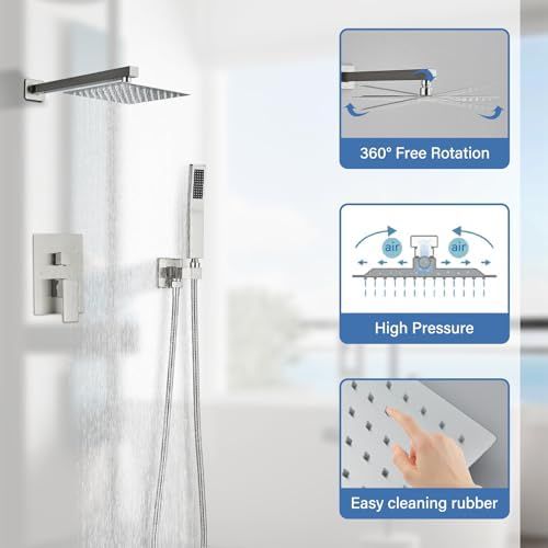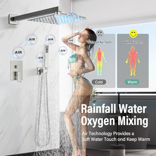 Air Pressurization: Bathroom luxury shower faucet set complete with adoption of innovative air injection technology, the rainfall Shower Head mixes water with air to increase the water pressure to 100%, and simulates the natural raining to provide you with natural contact of water experience.