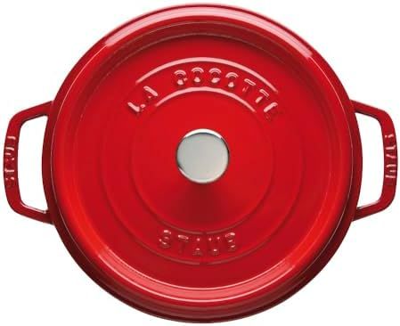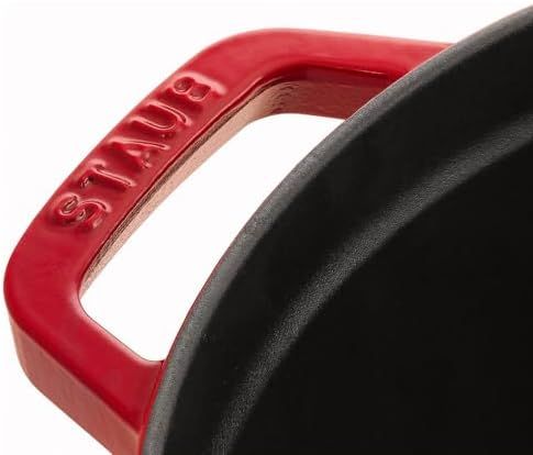 LOCKS IN FLAVOR: Heavy weight tight-fitting lid retains moisture, spikes on the lid create a rain-forest effect evenly returning juices back onto food SUITABLE FOR ANY COOKING SURFACE: Smooth enamel bottom works on all stovetops including gas, electric, glass ceramic, induction, and halogen PERFECT BROWNING: Unique interior textured black matte enamel results in exceptional browning EASY CLEAN UP: Dishwasher safe, hand washing recommended STYLISH ADDITION TO THE KITCHEN: Colorful enamel outside adds flare to your kitchen and table Included components: 1 staub la cocotte 6.75 l cast iron round cocotte, cherry