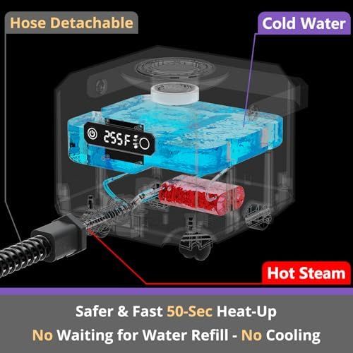 [awasky Steam Cleaner New Design Features]: Produces steam in just 50 seconds, reaching temperatures of 230°F-260°F (110°C-126°C). The detachable hose makes it easy to store. It offers both dry and wet modes, and you can add water at any time during operation without closing the water tank lid, with no waiting required. The dimensions are 9.2\" x 9.2\" x 8.4\", and it comes with a 7.2-foot (2.2-meter) extended hose and a 0.6-gallon (2.2-liter) water tank