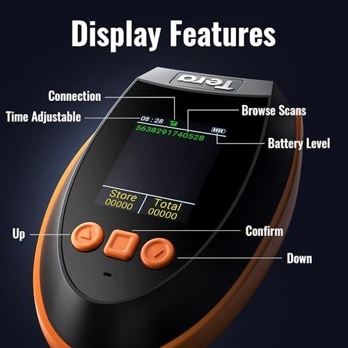 【Unique Designed Screen Setting】It allows you to customize the screen display according to your preferences. With this innovative feature, you can easily set the language, adjust volume settings, select connection options, and view stored and total barcodes. Experience unparalleled convenience and flexibility as you personalize the settings of your Tera HW0009 to suit your specific needs. 【Package Includes: Barcode Scanner x1, Charging Cradle x1, Charging Cable x1, User Manual x1.】