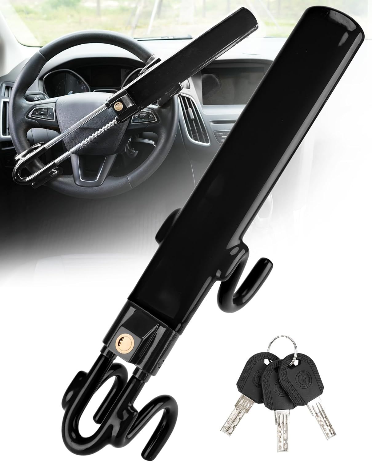 \"\n🔐DOUBLE PROTECTION DESIGN&EASY TO USE:The steering wheel lock adopts the humanized design of four locking hooks and twin bars, which can be locked on the steering wheel more firmly and with a sense of security.The car theft prevention device is easy to use, install and remove. It\'s simple to lock and unlock with keys in seconds.\n🔐HIGHLY VISUAL DETERRENT AND SAFE:The bright yellow color of the car lock is a fine choice for maximum visibility both day and night,which tells the thief \\"Not this car\\"!The anti car theft device greatly reduces the possibility of being targeted by thieves and protects your car security effectively.Tevlaphee steering wheel lock gives you more peace of mind!\n🔐A+ GRADE ANTI-THEFT LOCK:Car wheel lock is made of high quality steel and aluminum, and the solid locking bar is stronger!The precise double spring crescent lock sub-type encoding key is specially designed to prevent professional thieves and mutual open rate!The overall body of the anti-theft steering wheel lock is treated with a plastic dipping process that will not damage you steering wheel.\n🔐WORK FOR MOST CARS:The universal anti theft steering wheel lock can be adjusted to fit steering wheels with inner diameter between 5.3”-14.1” for sedans,SUV,pickup trucks,vans,trucks etc.You have the flexibility to make adjustments as you wish!\n🔐YOU DESERVE THE BEST:If you are not satisfied with your purchase or have any questions about our steering lock,please feel free to contact us! You have no risk in trying. We promise you will get high-quality products and service from us. You can buy with confidence!\n› See more product details\"