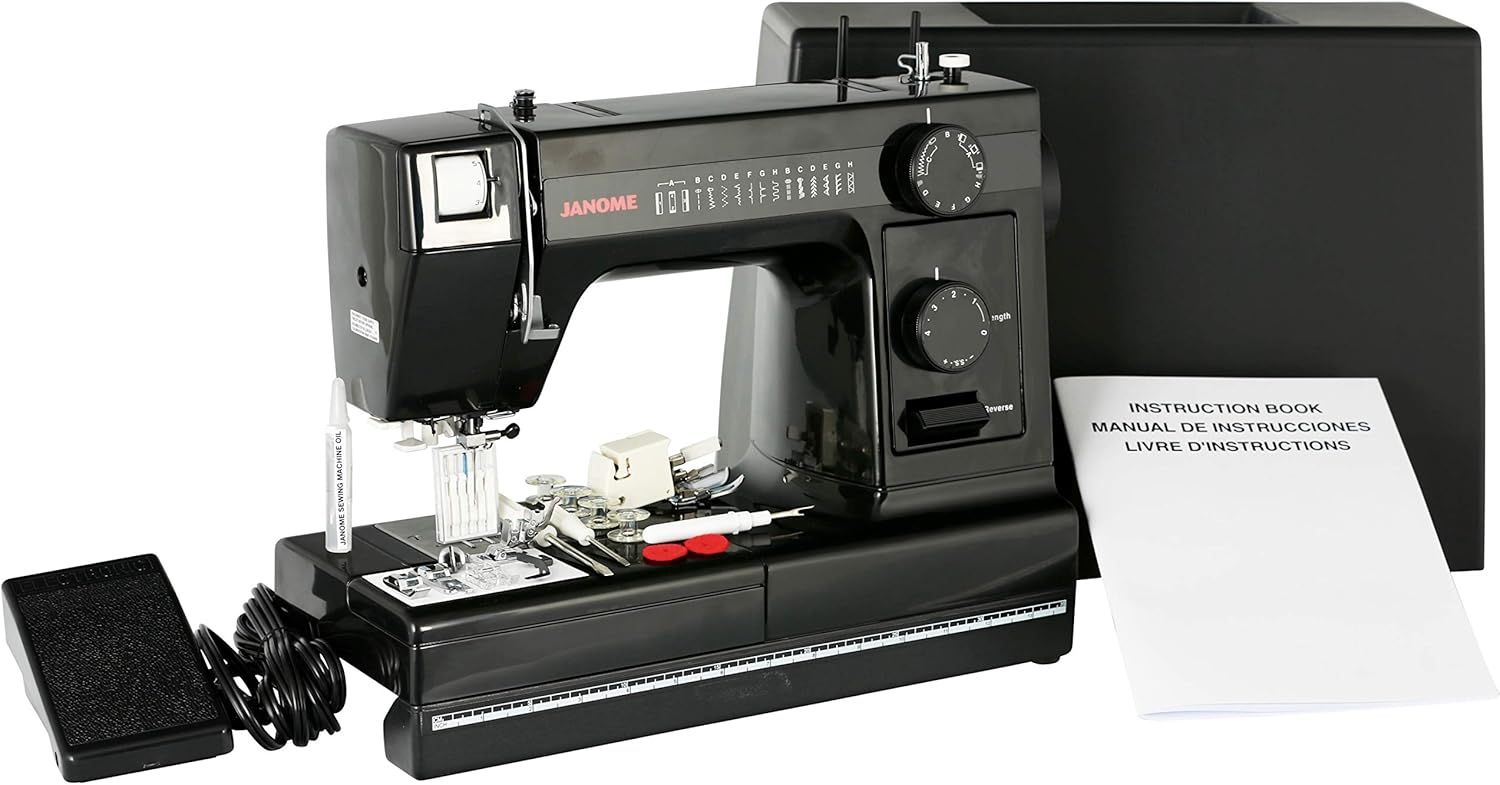 The Janome HD1000B Black Edition Heavy-Duty Sewing Machine with 14 Built-In Stitches, Made to last with HD Cast Aluminum Body Core - Switch from fine to Heavier Fabrics