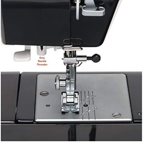 The Janome HD1000 Heavy-Duty Sewing Machine features 14 of the most practical stitches, plus a built-in buttonhole and consistent performance on a wide range of fabrics For every-day sewing POWERFUL MOTOR: 14 Built-In Stitches including Utility Stitches, Stretch Stitches and a Simple to Use 4 Step Buttonhole MADE OF CAST ALUMINUM: Like the Metal Machines of Years Ago the Janome Sewing Machine HD1000 is Made To Last. LODED ACCESSORY BOX: Accessories Include - Bobbins, Felt, Extra Needles, Two Screwdrivers, Seam Ripper/Buttonhole Ripper, Zipper Foot, Hemmer Foot, Buttonhole Foot, a Hem Guide and a Soft Cover SPECIAL FEATURES: The Janome HD1000 Sewing Machine Has A Free Arm For Sewing Pants, Cuffs and Collars and Drop Feed for Darning, Stippling, Attaching Buttons and Other Free Motion Applications. AUTOMATIC NEEDLE THREADER: The Janome HD1000 Even Has a Built-In Automatic Needle Threader - Thread Your Needle with Ease and Without Eye-Strain