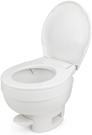 Space-saving design allows for the closest possible mounting to the wall\nFoot flush positioned for minimal floor space interference\nImproved mounting bolt slots specifically designed for easy installation\nResidential-sized SloClose seat and cover\nProvides the deepest toilet bowl available for RVs\n› See more product details