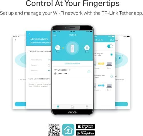 𝐒𝐞𝐭 𝐔𝐩 𝐢𝐧 𝐌𝐢𝐧𝐮𝐭e𝐬 - Easily set up and manage your network via the TP-Link Tether app (Android/iOS). Use the intelligent signal indicator to find the perfect location between your router and the dead zone for maximum efficiency.