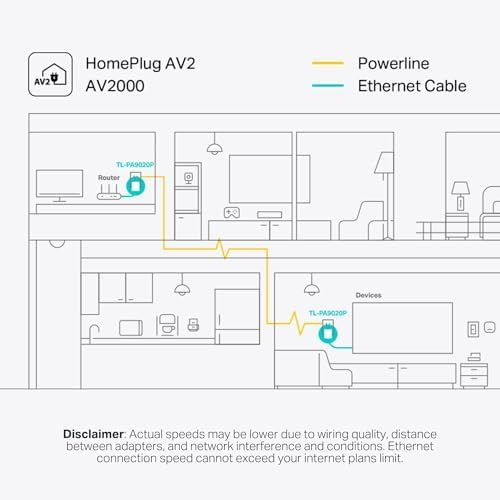 𝟐𝟎𝟎𝟎 𝐌𝐛𝐩𝐬 𝐇𝐨𝐦𝐞𝐏𝐥𝐮𝐠 𝐀𝐕𝟐 - Delivers ultra-fast data transfer speeds of up to 2000 Mbps over your home’s existing electrical wiring, making it the ultimate Ethernet extender for 4K streaming and lag-free gaming.