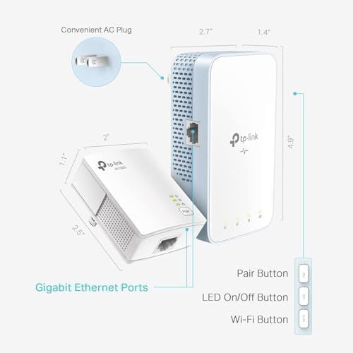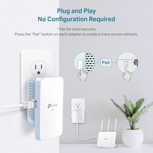 š¢ ššØš§šš¢š š®š«ššš¢šØš§ - Instantly copy your network name and password from your router with one press of the WiFi button. Any future setting changes will be automatically synced to the entire powerline network.\nšš¢š ššš¢š ššš”šš«š§šš ššØš«š - Features an integrated Gigabit port to provide secure, lightning-fast wired connectivity for high-demand devices such as desktops, 4K smart TVs, or gaming consoles.\nšš„š®š , ššš¢š« šš§š šš„šš² - Set up a secured powerline network in minutes with no complex configuration required. Simply plug the adapters in and pair them to enjoy seamless wired and wireless connectivity.\nšš§š¢šÆšš«š¬šš„ šš ššØš¦š©ššš¢šš¢š„š¢šš² - Fully compatible with all TP-Link AV2000, AV1300, AV1200, AV1000, AV600, AV500, and AV200 powerline adapters for easy and flexible network expansion.\nShow More