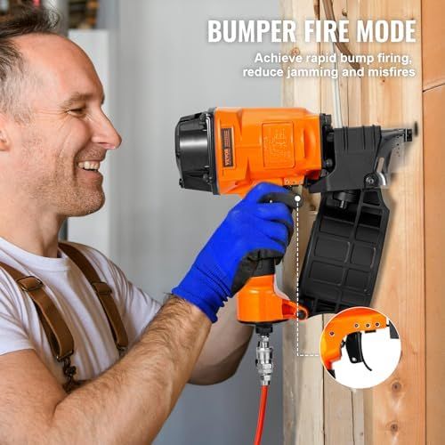 Lightweight and Sturdy: Weighing just 8.47 pounds, this coil nail gun is compact and lightweight, featuring ergonomic body and anti-slip handle grip that minimizes hand fatigue. Built from robust materials, it is sturdy enough to withstand long-term use, ensuring reliable performance for demanding tasks.