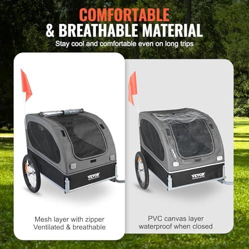 Easy In, Easy Out: Getting your pet in and out is a breeze with this pet bike trailer. The transparent front door provides protection from wind and rain while ensuring excellent ventilation. Your pet can hop in through the zippered front and rear doors and even stick their head out, all with ease.