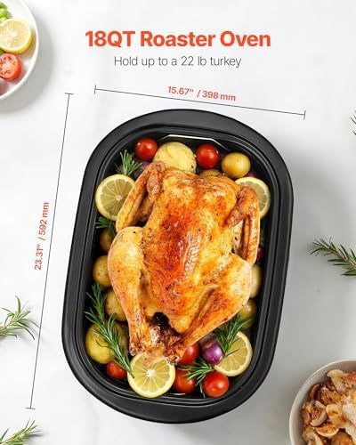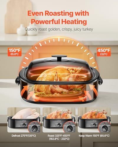 Large 18QT Capacity: With an 18Qt interior, VEVOR electric roaster oven easily fits a whole turkey without hassle. Whether it\'s a holiday feast or a casual get-together, it\'s your go-to solution for serving large, delicious meals