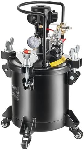 10L Large Capacity: The spray paint pressure pot tank has a 10L/2.5 gal capacity, with inlet and a outlet diameters of 1/4\" and fluid outlet diameter of 3/8\". This extra-large capacity allows you to efficiently complete painting tasks for building exteriors, outdoor fences, boats, home decor, and more, without the need for frequent paint refills.