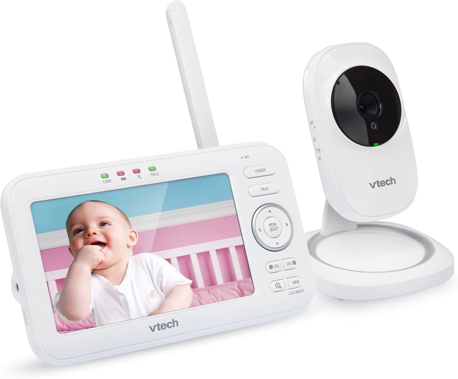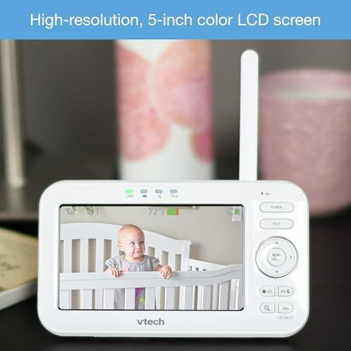 \"\n💖【5\\" LCD SCREEN】- This baby camera provides multiple viewing options, whether you are watching from in the house or out in the yard. A clear and convenient view of your baby from anywhere with a 5\\" LCD screen ensures convenience and peace of mind whether you\'re indoors or outdoors.\n💖【LONG RANGE】- Enjoy the freedom of movement with a 1,000 ft range and out-of-range indicator, allowing you to monitor your baby while attending to other tasks around the house without worry.\n💖【SOOTHING SOUNDS & LULLABIES】- Play 5 soothing sounds and 4 lullabies right from the baby camera monitor unit to help your baby fall asleep without you going in the room. This feature allows you to create a comforting environment for your baby without being physically present, promoting better sleep and relaxation.\n💖【WALL-MOUNT&TEMPERATURE SENSOR】-Wall-mountable design allows you to place baby monitor anywhere for optimal visibility. Built-in temperature sensor alerts you when it is too hot or too cold.Rechargeable battery ensures continuous monitoring with low-battery alert,allowing you to monitor child\'s well-being continuously.\n💖【NIGHT VISION】- Automatic infrared night vision allows you to see your little one as they\'re sleeping. Keep a watchful eye on your baby, even in low-light or dark conditions, providing you with peace of mind and allowing you to respond to any needs or concerns quickly.\n💖【SOUND INDICATOR】- With a nine-level sound indicator, you can hear all noises, from slight snores to loud cries. This baby monitor provides you with real-time audio feedback and alerts you to any changes or disturbances in your baby\'s environment so you can promptly attend to their needs.\n💖【TWO-WAY TALK】- Two-way communication allows you to talk to your child if they need to hear the sound of your voice to settle down. This baby monitor no wifi enables you to provide reassurance and comfort to your baby from a distance, fostering a sense of security and reducing the need for constant physical presence.\n› See more product details\"