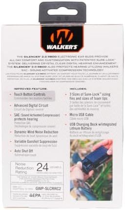 EAR BUDS RECHARGABLE\\n24 dB noise reduction rating\\nIncludes 3 sizes of Sure-Lock sizing fins and 3 sizes of foam tips\\nUSB charging dock with integrated lithium battery\\nUSB cable included\\n› See more product details