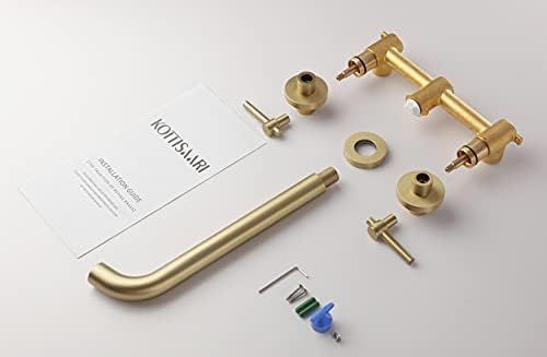 Wall Mount Tub Filler,Two Handle Bathtub Wall Faucet,Extra Long Spout Reach with High Water Flow,Brass Rough in Valve Included,Gold Brushed