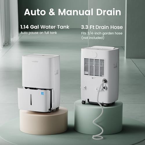 VARIOUS DRAINAGE OPTIONS- Two drainage methods are provided for the dehumidifier. You can detach and remove the bucket to empty the 4.3L (1.14 Gal) reservoir, or enable continuous drain only via a 3.3 ft drain hose (included) for peace of mind. The DETACHABLE filter allows you to remove and wash it, for healthy and fresh air. CAUTION: When you drain with water tank, Please tighten the switch at the water pipe to avoid water leakage.