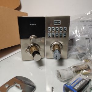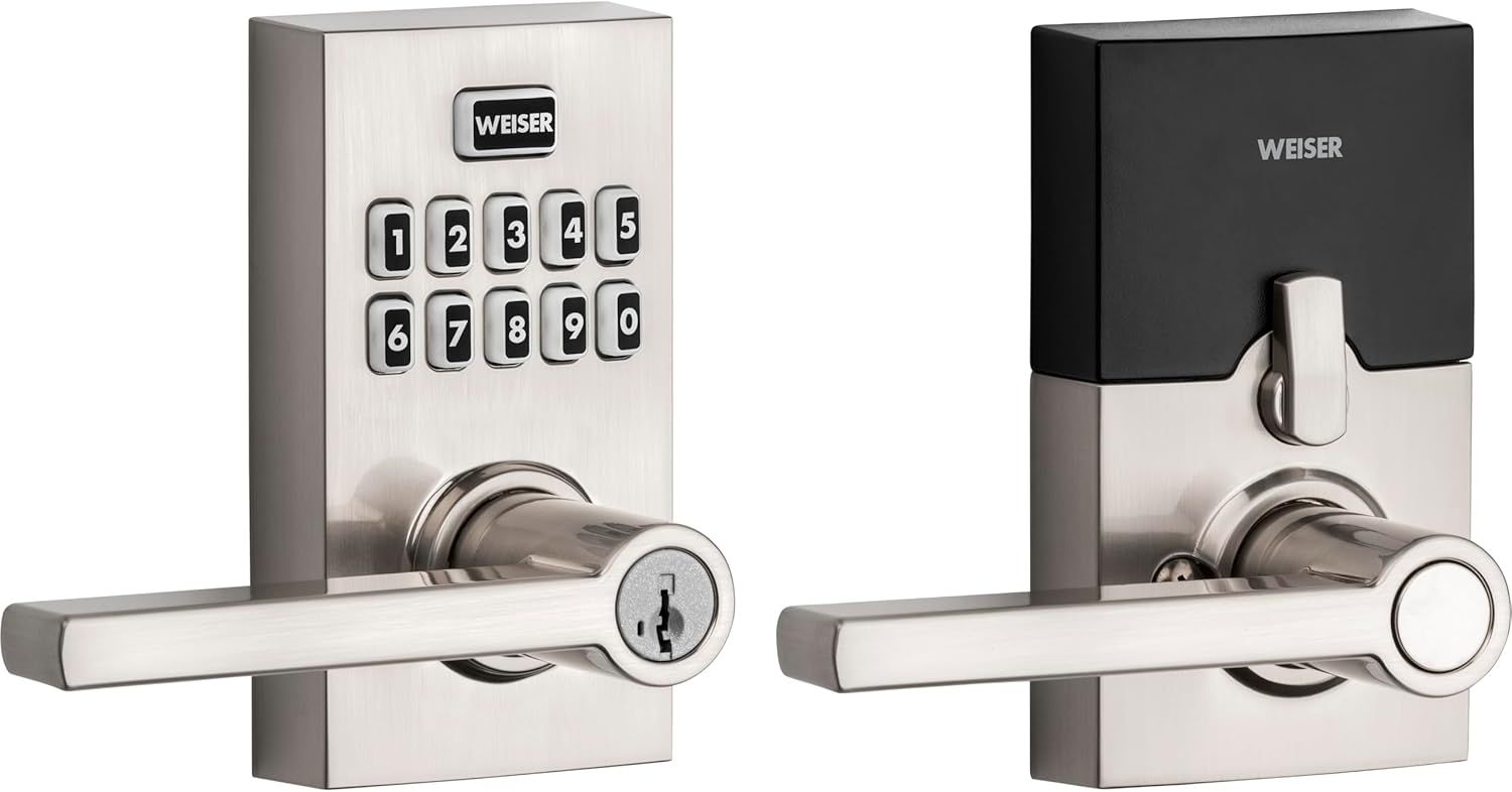 \"\n[ELECTRONIC LOCK WITH LEVER] Add a level of security and style to your home with the SmartCode touchpad electronic lever. You can lock up your home office, wine cellar or storage room and never have to worry about keys! Keyed lever may be operated by key outside or electronic keypad and thumb turn inside. Locking mechanism functions with turn piece on the interior of the lock.\n[TOUCHPAD OPERATION] Gain entry by simply entering your personalized access code, while locking is as easy as touching a button. Keypad stays lit for 5 seconds after inactivity.\n[AUTOLOCK FEATURE] Has Multiple pre-defined auto-locking settings available.\n[SMARTKEY TECHNOLOGY] Re-key the lock yourself in seconds, leaving lost or unreturned keys obsolete.\n[EASY INSTALLATION] Easily installs in minutes with just a screwdriver. Fits most standard residential door preparations. Latch has adjustable backset 2-3/8\\" to 2-3/4\\".\n[CERTIFIED HIGHEST RESIDENTIAL SECURITY, DURABILITY AND FINISH] ANSI/BHMA Grade AAA.\n[PACKAGE INCLUSIONS] Interior and Exterior Assembly Units, Levers, 9V Battery, Latch, Strike, Fasteners, Allen Wrench, Spindle, 2 Keys, SmartKey Tool, Manual\n› See more product details\"