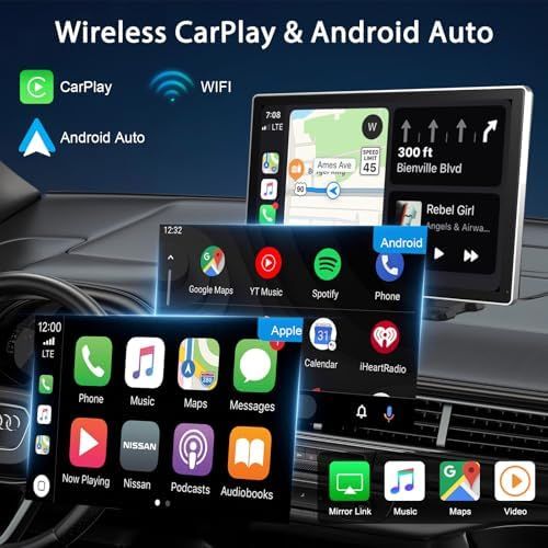 🚘【Wireless Mirror Link & 9\'\' HD Touchscreen】 Wireless Apple Carplay Stereo Screen both for Android & iOS with 9\'\' HD Touchscreen making it perfect for syncing media player, navigation. With a 60Hz refresh rate and high resolution, the visuals for navigation, streaming, and more are sharp and smooth.