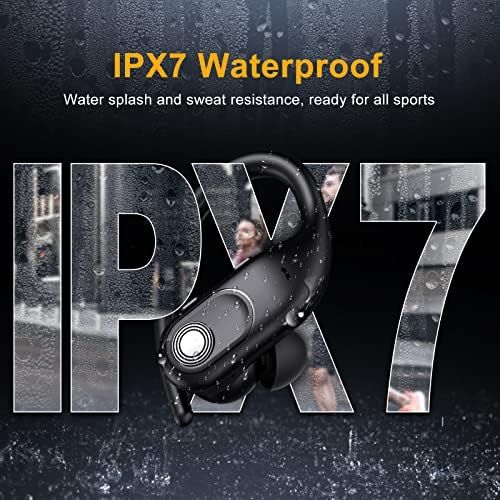 \\\"\\n【Wireless Charging Case with LED Display】2500mAh charging case supports 16 times fully charging for wireless earbuds and let you enjoy more than 130 hours music time. Each earbud can get 8hrs playback on a single charge. Charging case can charge your phone as an emergency power bank. The case is compatible with Type-c and wireless charger. LED power display shows the charging status of earbuds and charging case.\\n【Hi-Fi Stereo Bass & Crystal-clear Calling】The wireless headphones adopt 10mm speaker which provides stereo sound with deep bass and clear treble. You will hear clear HD stereo sound with punchy bass, reproducing your music vividly. The true wireless earbuds feature noise-canceling calls, effectively reducing background noise, creating a stable and clearer calling environment like you are communicating face to face with others.\\n【Latest One-step Pairing Technology】No need to press any button to activate the wireless headphones. This Bluetooth earbuds can be automatically powered on and paired after open the charging case. Meanwhile Bluetooth headphones can also be automatically powered off and charged after putting back into the charging case. Simply one press to answer or reject phone calls, Bluetooth pairing, power on and power off, pretty easy to use.\\n【Ergonomic & Lightweight Earhooks】Super lightweight and ergonomic silicone earhooks ensure a secure, comfortable fit for any ear. Long-term strenuous exercise will not fall off or put pressure on the ear. Equipped with 3 pairs of ear caps, which can stay on your ears and get a suitable fitting. These wireless earphones are very suitable for sports,work,driving etc.\\n【IPX7 Waterproof】These wireless sport headphones are rating at IPX7 waterproof, the surface of both in ear earbuds is sealed to prevent sweat or rain from entering, and the internal nano-coating to airborne moisture from damaging the components. Protects the Bluetooth earbuds from slight raindrops or sweat during intense workouts. Widely applied to running, exercises, gym, travel, even on a rainy day.\\\"