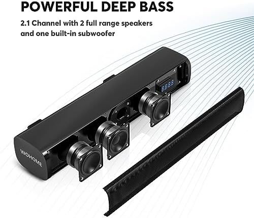 2.1 Channel: With one built-in subwoofer deliver powerful deep bass, 2 full range speakers provide clearly voice and surround sound.