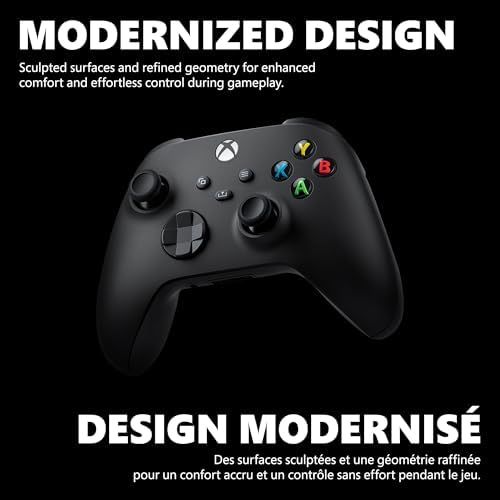 Experience the modernized design of the Xbox Wireless Controller in Color Black, featuring sculpted surfaces and refined geometry for enhanced comfort and effortless control during gameplay. Stay on target with the hybrid D-pad, textured grip on the triggers, bumpers, and back-case. Seamlessly capture and share content with the Share button Quickly pair with, play on, and switch between devices including Xbox Series X|S, Xbox One, Windows PC, Android, and iOS* Make the controller your own by customizing button mapping with the Xbox Accessories app.* Plug in any compatible headset with the 3.5mm audio headset jack Includes Xbox Wireless and Bluetooth technology for wireless gaming on console, PC, mobile phones, and tablets.* *See bottom of page for important information.