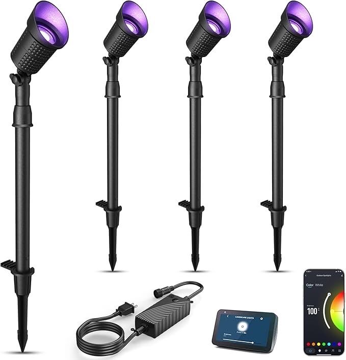 Voice Control Landscape Lights: Landscape lighting can work with Alexa and Google Assistant. You can control these outdoor spot lights with your voice. The brightness and color of these RGB lights can be adjusted without your moving.